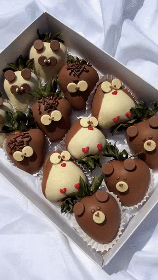 Surprise someone special with a box full of sweetness and smiles! This gift set features a dozen fresh strawberries dipped in premium Belgian milk and white chocolate, each hand-decorated as charming animals like pandas, penguins, owls, and bears. Perfect for birthdays, baby showers, anniversaries, or simply to brighten someone’s day. Every strawberry is crafted with care and love, making it a unique and delicious gift for any occasion.