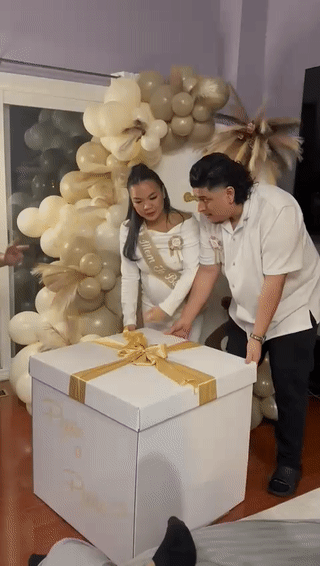 Gender Reveal Package includes a backdrop, Balloon Garland and a Giant Gender Reveal box filling up with balloons in gender colour.